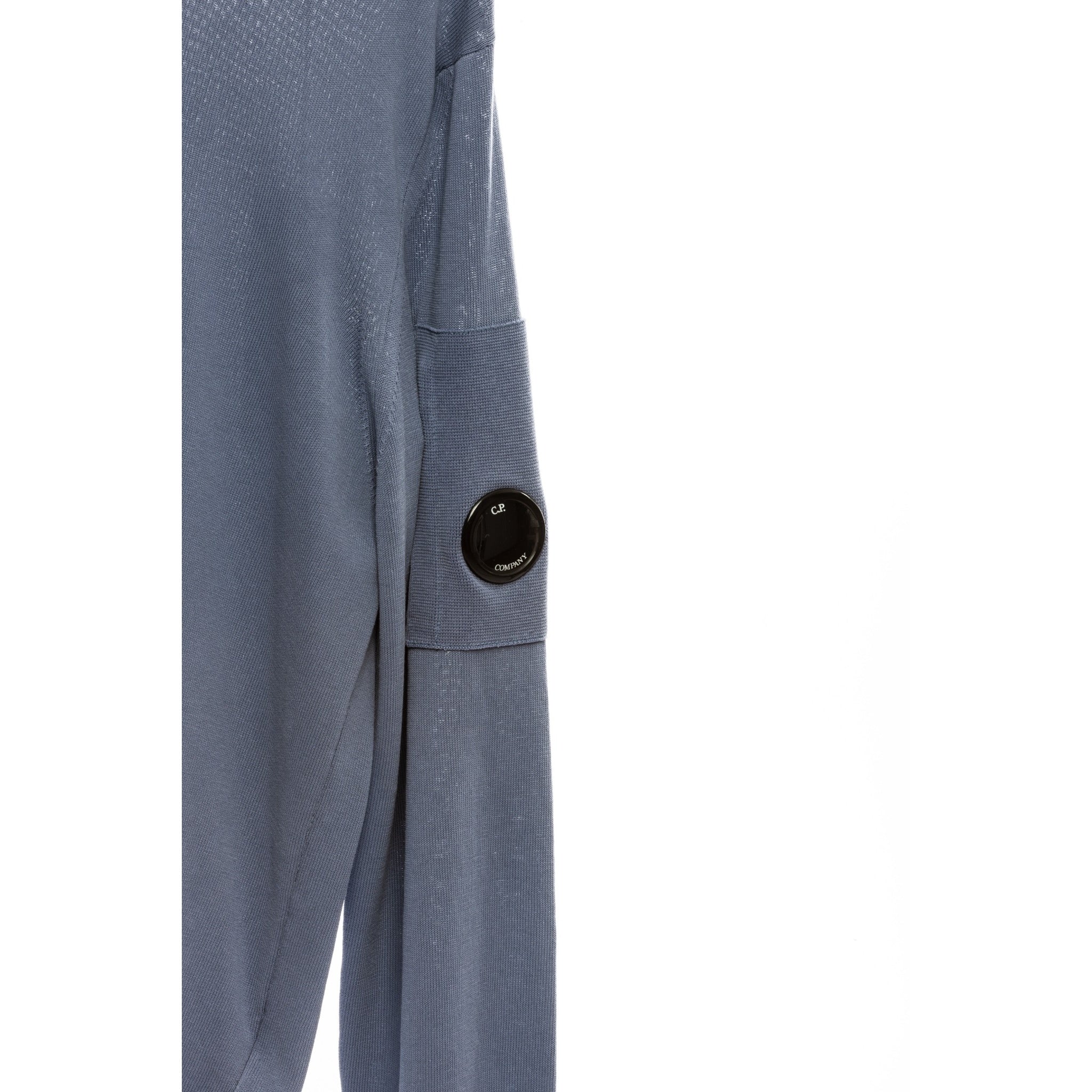 C.P. Company crewneck sweater in a unique purple-grey tone, size Large, brand new with tags. Features the iconic lens detail on the sleeve pocket and ribbed cuffs and hem for a structured fit. Made from premium cotton knit, offering a lightweight yet comfortable feel. A versatile piece that blends casual wear with C.P. Company’s signature functional design.