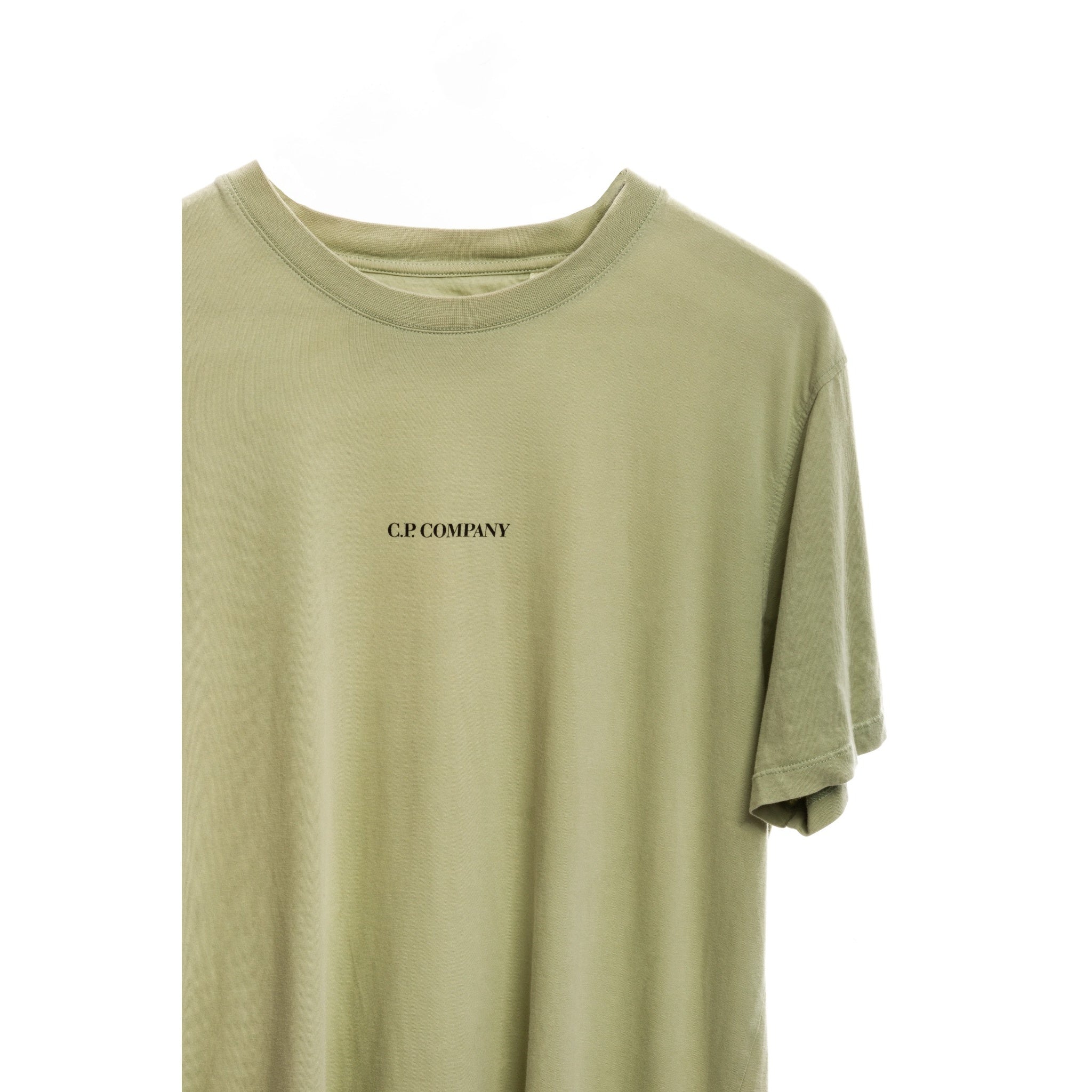 Minimalist C.P. Company T-shirt in light green, crafted from soft cotton and finished with a small printed logo on the chest. A versatile staple for casual and streetwear looks.