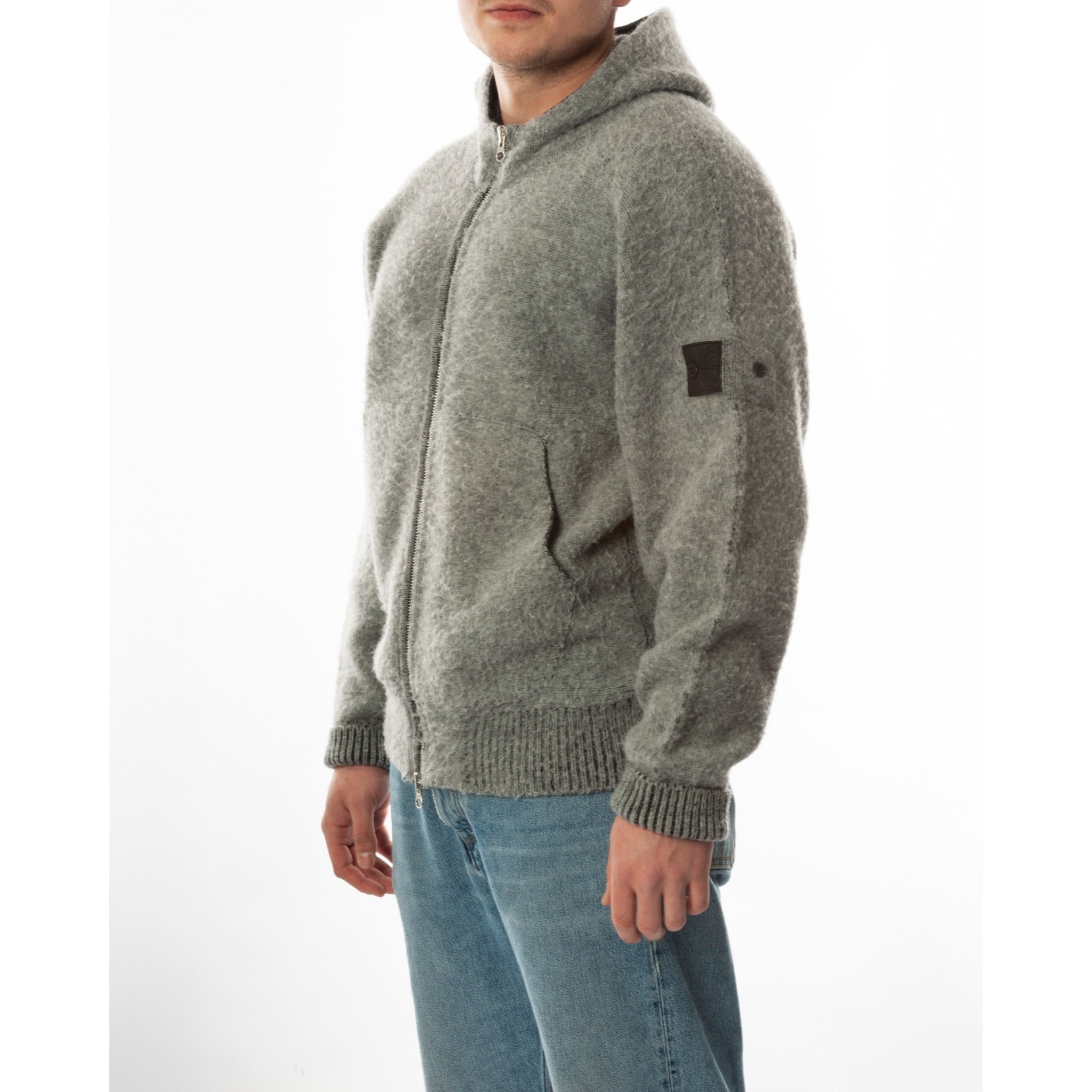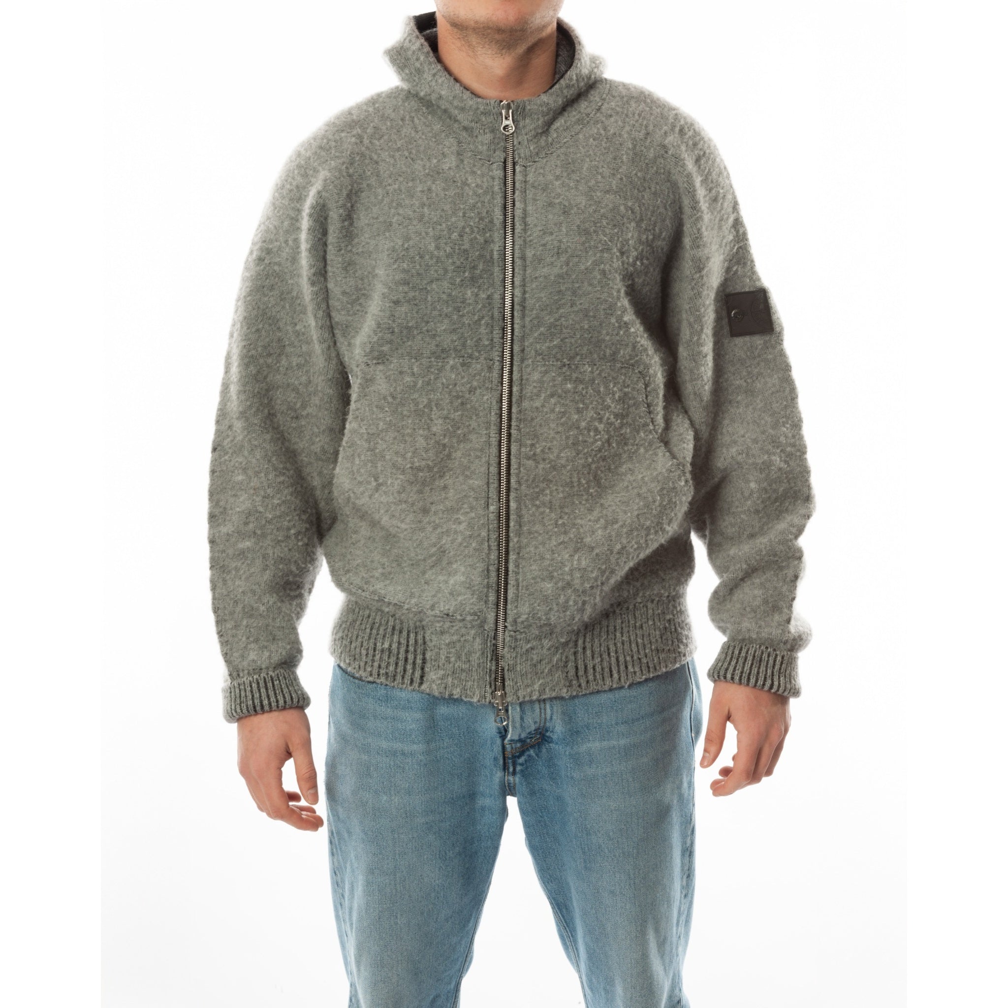 Stone Island Shadow Project 2021 Grijze wollen hoodie met rits, maat L